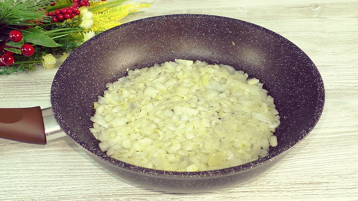 Начинается всё с того, что лук обжаривается на растительном масле до мягкости и легкой прозрачности, без подрумянивания. По мере готовности, к луку добавляются грибы, которые не стоит мелко нарезать, чтобы сохранить их текстуру.