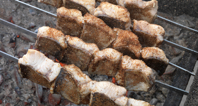Процесс жарки шашлыка
