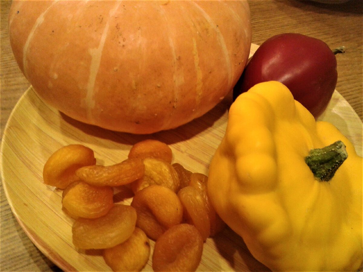 2. После этого добавить тыкву, кабачки и сладкий перец, понемногу доводя до кипения. Далее можно вводить курагу и, по желанию, острый перец. Не забудьте хорошенько промыть фасоль перед добавлением!