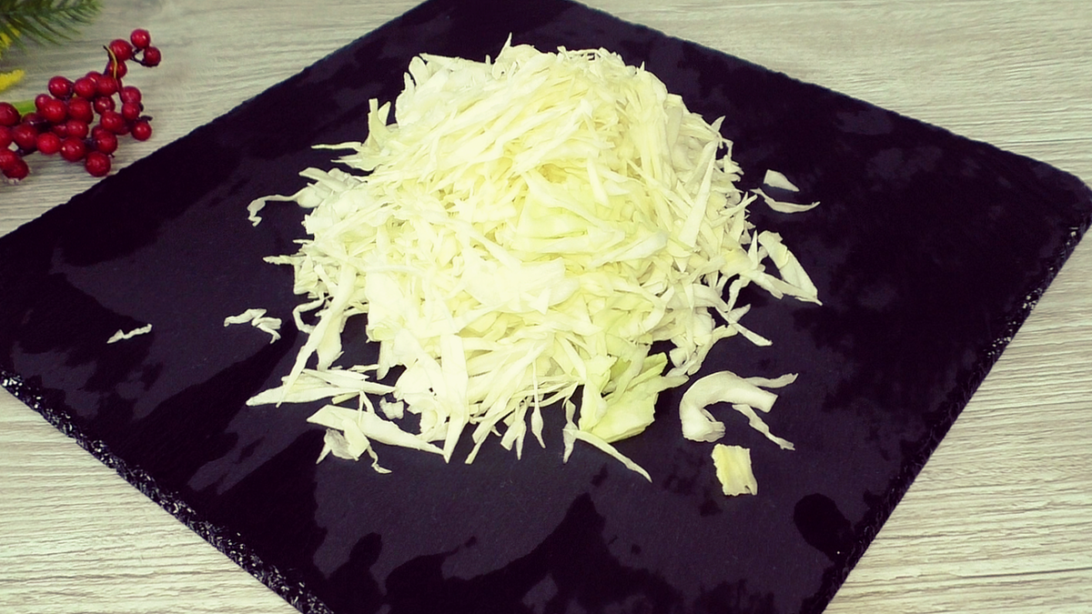 Сначала капусту нужно нашинковать — чем тоньше, тем быстрее она приготовится. При этом предварительная варка капусты не потребуется. К нарезанным овощам добавляются лук и морковь, всё солится и перчится по вкусу, после чего массу следует немного помять руками.
