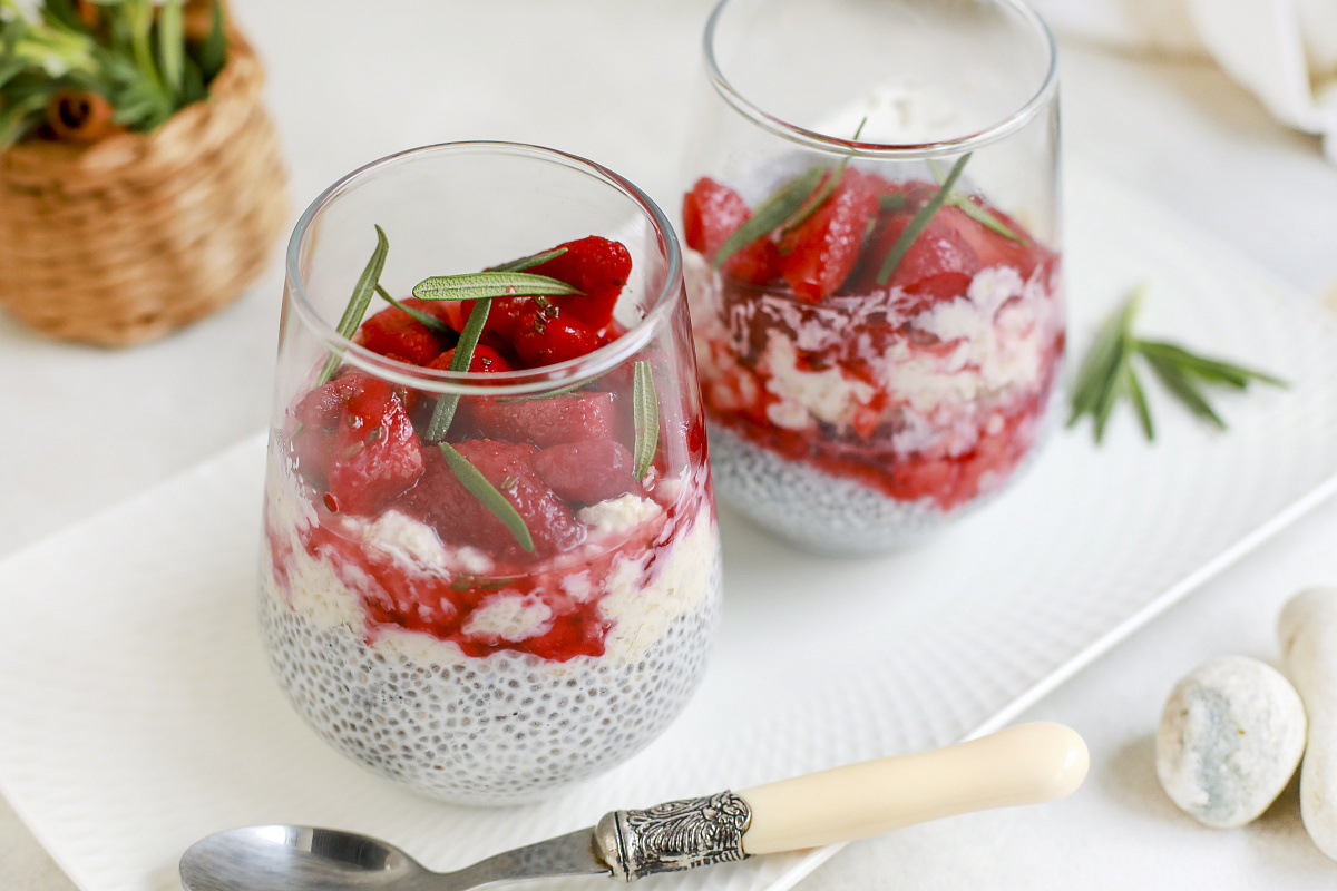 Шаг 3: В отдельной миске смешайте овсянку с греческим йогуртом. Затем в сервировочную посуду выложите семена чиа, сверху – овсяную массу и клубнику. Наслаждайтесь!