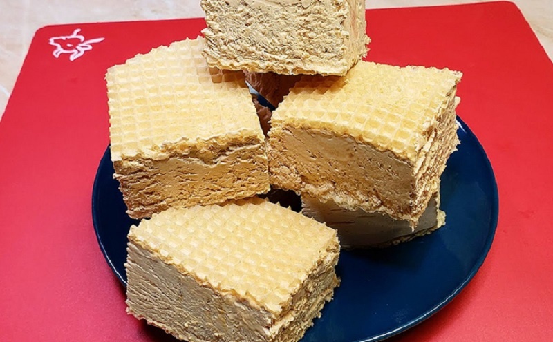 Сливочное мороженое с добавлением варёной сгущёнки прекрасно сочетает в себе лёгкость и насыщенность крема, создавая невероятно мягкую текстуру. Вафельные коржи добавляют хрустящую нотку, наполненную теплотой и уютом.