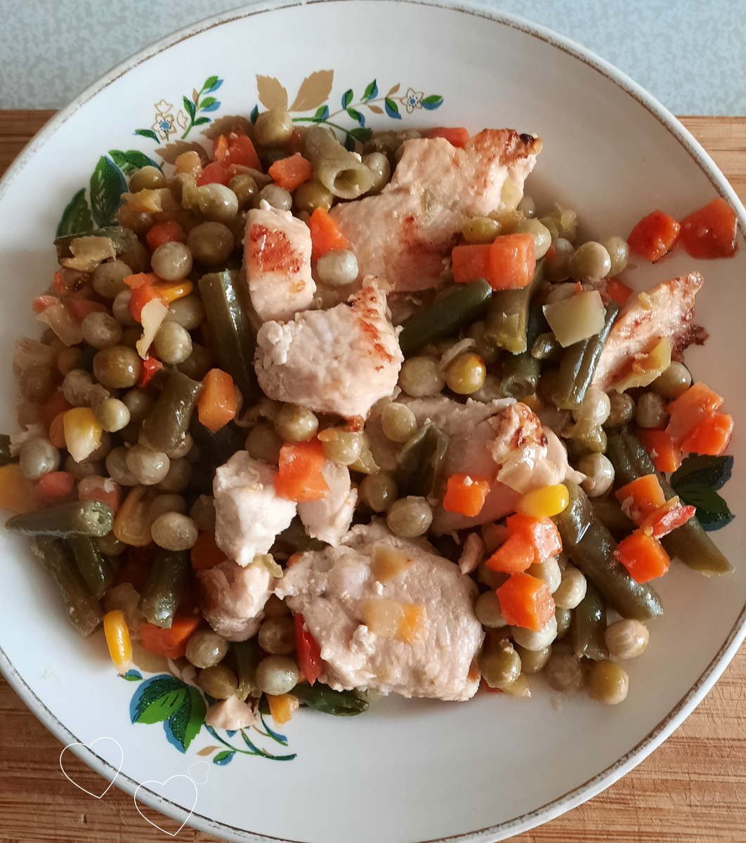 Мясо с овощами – идеальное сочетание для вкусного ужина. И это мнение, вероятно, разделят многие. Сегодня предлагается приготовить куриное филе в компании с яркими замороженными овощами.