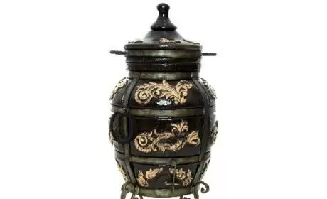 Корпус тандыра украшают ручная роспись и персидский орнамент, а ручки, отделанные натуральной кожей, добавляют стилю индивидуальности. Элегантные кованые элементы также не остаются незамеченными и подчеркивают качество исполнения.