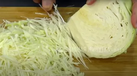 Подготовка начинается с нарезки капусты тонкой соломкой. Лук измельчается, а морковь натирается на крупной терке. Далее, обжариваем лук на небольшом количестве растительного масла, добавляем морковь и продолжаем тушение до легкого золотистого цвета.