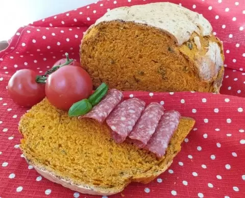 Мастера кулинарии представляют уникальный рецепт пряного томатного хлеба, насыщенного ароматом свежего базилика и сушеного лука. Этот хлеб отличается особой хрустящей корочкой, которая создается благодаря аппетитной "шапочке" из белка и пряностей, делая его идеальным дополнением к любому столу.