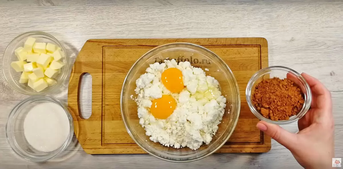 Первым делом, в глубокой миске объедините 500 г жирного творога, два яйца и 2 ст. л. порошка какао. Применение хорошего творога – залог успеха нашего сырка. Далее добавьте 120 г сахара, 100 г размягченного сливочного масла и щепотку соли. Чтобы достигнуть идеальной консистенции, перемешивайте все ингредиенты тщательно.