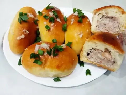 Готовые пирожки обмакивать в чесночную заливку и подавать горячими. Это великолепное блюдо прекрасно подходит как для семейного ужина, так и для угощения гостей. Приятного аппетита!