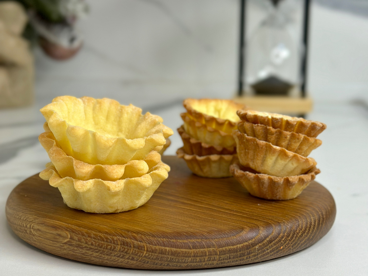 Готовые тарталетки получаются тонкими, хрустящими и отлично держат форму — они идеально подходят для самых разнообразных начинок, как солёных, так и сладких.
