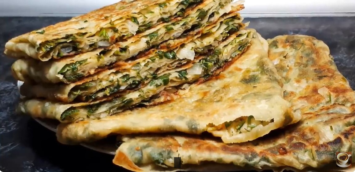 Замесив тесто, дайте ему немного отдохнуть, пока подготавливаете начинку. Она не только бюджетная, но и невероятно вкусная. В принципе, можно использовать любую свежую зелень, которая есть под рукой: например, петрушку, укроп или кинзу.
