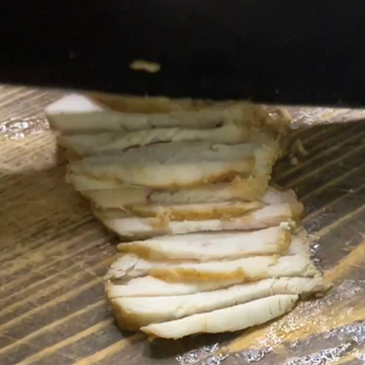 - Нарежьте куриное филе (или колбасу, ветчину) соломкой.