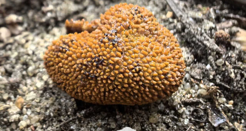 Элафомицес шиповатый – это подземный гриб, который внешне схож с известным трюфелем. Его плодовые тела размещаются на глубине от 2 до 20 сантиметров и имеют шиповатую или зернистую поверхность, окрашенную в желтовато-серый или черновато-бурый цвет. Интересно, что внутренность гриба, известная как глеба, по мере зрелости становится из белой ватообразной массы споровым порошком темно-коричневого оттенка.