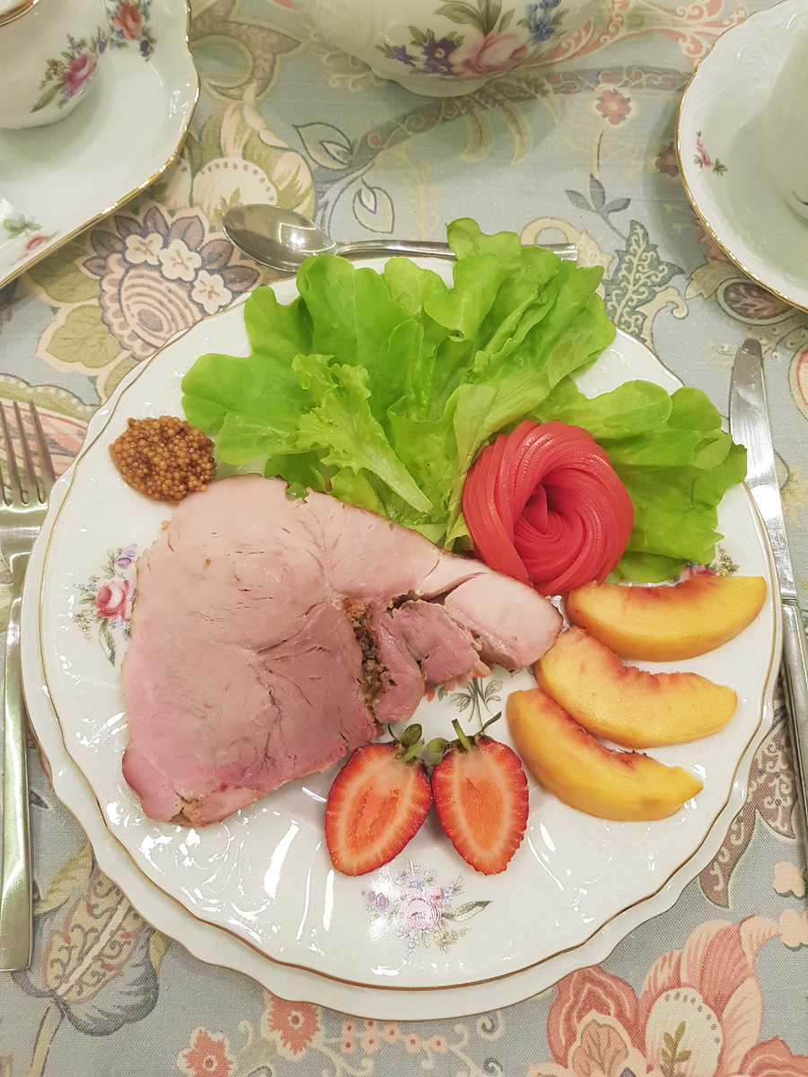 По завершении приготовления подать буженину с хреном и горчицей, а также дополнить листьями салата, помидорами или даже фруктами, такими как персики и клубника. И не забудьте про чашку чая с чабрецом! Приятного аппетита и прекрасного дня!