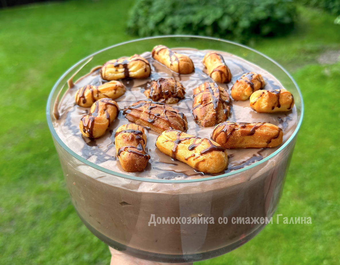 - **Ингредиенты для заварного крема:** 500 мл молока, 1 яйцо, 70 г сахара, 5 ст. л. крахмала, 1/2 ч. л. ванилина.