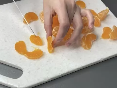 Для начала важно подготовить все ингредиенты. Мандарины необходимо очистить и разрезать пополам. Далее, размягченное сливочное масло нужно тщательно растереть с сахаром до образования однородной массы, после чего по одному добавлять яйца, не переставая мешать венчиком.