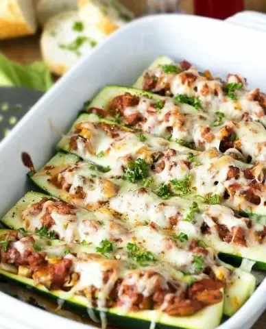 Приготовление фаршированных кабачков начинается с подготовки начинки. Для этого лук, чеснок, морковь и два стебля сельдерея мелко нарезаются и обжариваются на сковороде с оливковым маслом. После того как овощи слегка подрумянятся, к ним добавляется говяжий фарш и немного маринарного соуса. Не забывайте приправить смесь солом и перцем, а также щедро посыпать итальянскими травами.