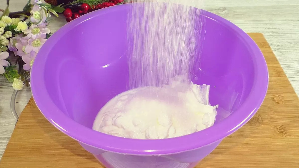 1. В глубокой миске соединить сметану, щепотку соли и сахар. Если сахар крупного помола, стоит подождать 5 минут, чтобы он растворился.