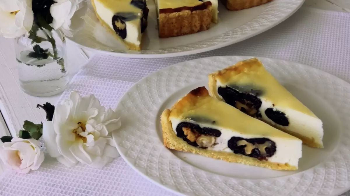 Десерт, который покорит сердца многих, теперь доступен для домашнего приготовления! Этот тарт восхищает не только своим внешним видом, но и невероятным вкусом. Нежное песочное тесто, наполненное сочным черносливом с грецким орехом, создает гармоничное сочетание. Легкий сметанный крем добавляет изюминку, напоминая по текстуре воздушный чизкейк.