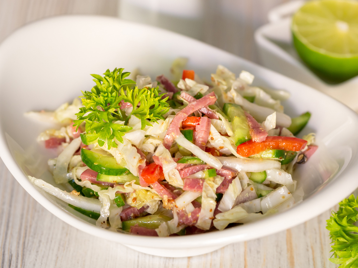 Когда речь заходит о салатах, многие думают о сложных рецептах и экзотических ингредиентах. Однако иногда наилучшие варианты оказываются перед нами в самой простой форме. Представляем уникальное сочетание пекинской капусты, освежающих огурцов и нежной ветчины, которые вместе образуют универсальное блюдо для любого случая!