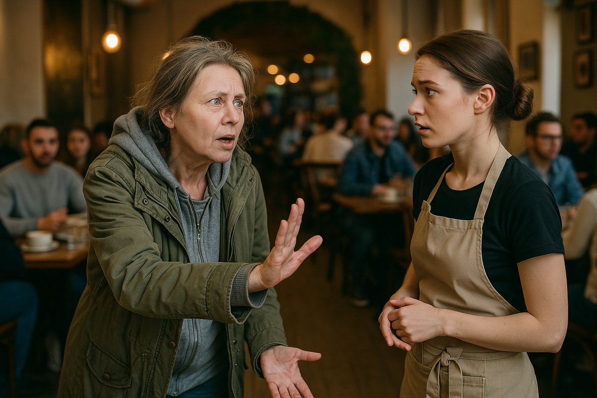 В обычный рабочий день, когда половина зала была заполнена жизнерадостными посетителями, в кафе вошла женщина в возрасте около 50 лет. Ее внешний вид вызывал беспокойство: потрепанная одежда и настороженный взгляд выдавали явное неприятие жизни. Направляясь не к столу или стойке, она тут же подошла к другим гостям.