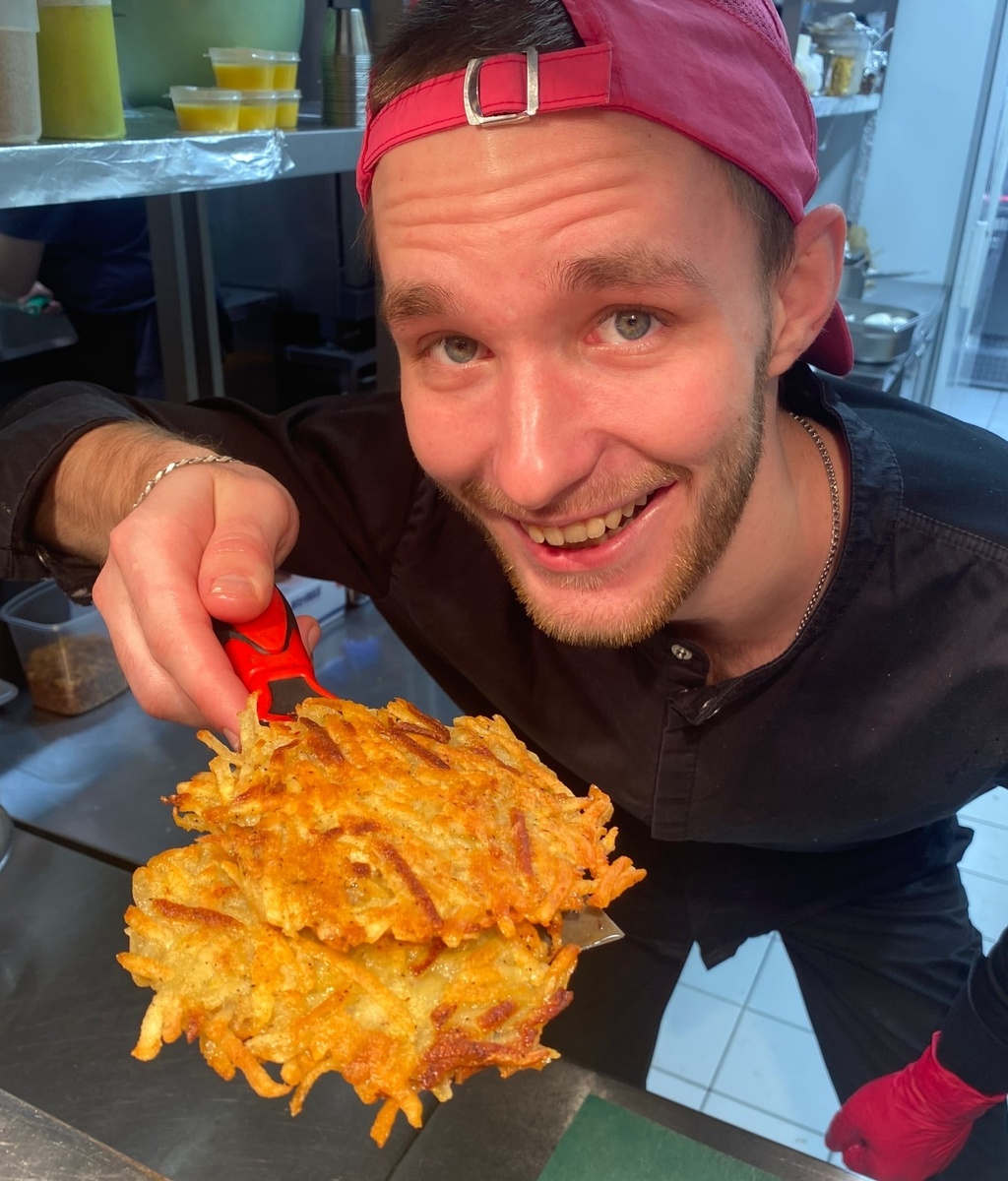 Каждый шаг изготовления драников — это искусство. Курируемые повара используют только картофель сорта "Гала", который отличается идеальной текстурой и сохраняет форму во время жарки. Процесс начинается с нарезки на специальном комбайне, отжатия лишней влаги и добавления соли с маслом в нужных пропорциях. Дальше — 10 минут на гриле, и ароматы восстанавливают аппетит.