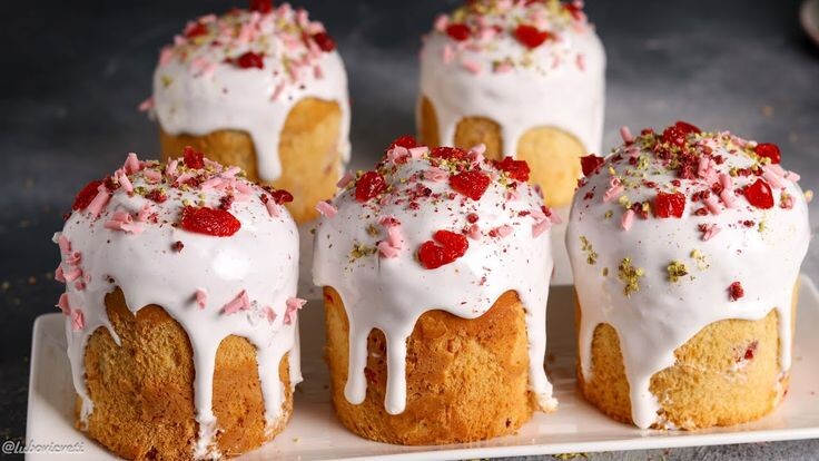 Перед выпечкой куличи смазывают взбитым яйцом и ставят в заранее нагретую до 180-190 градусов духовку. Выпекать нужно от 40 до 60 минут в зависимости от размеров форм. Чтобы избежать подгорания, по мере румяности верх можно прикрыть влажной бумагой.