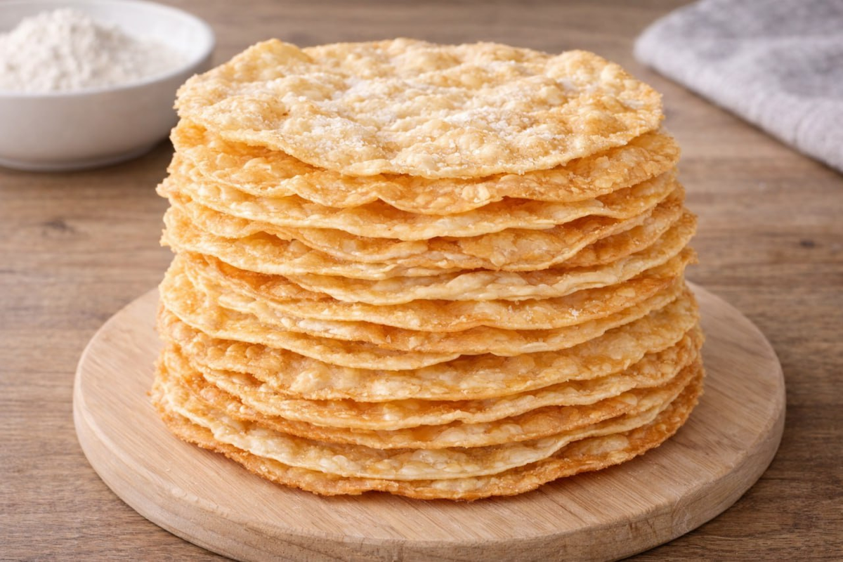 В тишине кухни рождается именно то, что делает десерт особенным: тонкие, почти прозрачные коржи, которые ломаются с аккуратным хрустом и сразу настраивают на нужный темп приготовления.